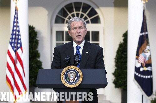 图为10月14日,美国总统布什在华盛顿白宫发表讲话。布什当天宣布,作为7000亿美元救市计划的具体举措,政府将动用其中的2500亿美元直接购买金融机构股份,以此促进金融市场恢复运转。 新华社/路透
