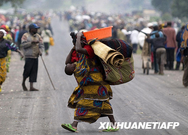 10月27日,众多难民逃到设在刚果(金)东部北基武省首府戈马以北约25公里处的一个避难地。 本月26日,刚果(金)反政府的恩孔达武装攻占了政府军在北基武省的一个据点,引发上万当地居民逃离家园以躲避战乱。 新华社/法新