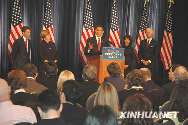 奥巴马日前在全国演讲中称:“我需要将美国最好的头脑集中起来领导我们,那也是我正在建立的经济团队,这些人有着卓越的判断能力和丰富的经验。这个班子能够稳定我们的经济,创造更多工作机会,让美国重新回到轨道上取。即使我们现在面临巨大的经济挑战,但如果我们反应迅速,足够大胆,这将是美国经济复兴的良机。”