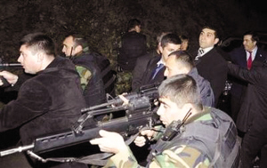 听到枪声,警卫赶紧亮枪护驾。