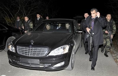 载有萨卡什维利的汽车在大批保安掩护下撤离枪击事件现场。