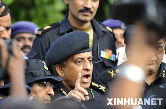 11月29日,印度国家安全部队负责人在孟买泰姬玛哈酒店现场向记者宣布清剿工作结束。当日,印度军方宣布在孟买泰姬玛哈酒店的清剿行动已经结束。目前警方正在逐个搜索房间,以确定是否还有残留恐怖分子。新华社记者王晔摄