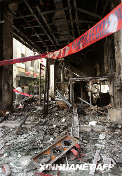 12月7日,在希腊首都雅典,一个商店在骚乱中被完全毁坏。新华社/法新