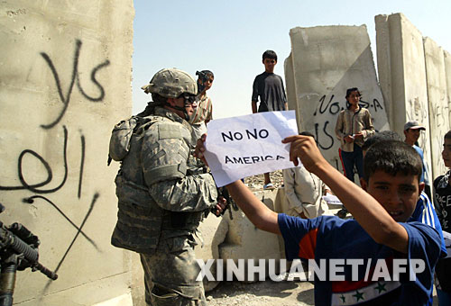 伊拉克巴格达街头一名少年手举反美标语抗议 新华社/法新