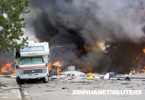12月8日,坠毁的F/A-18D战斗机导致美国加利福尼亚州圣迭戈大学城区域的房屋起火燃烧。当日,这架军用飞机在此坠毁,导致两人死亡,一些房屋受损。新华社/路透