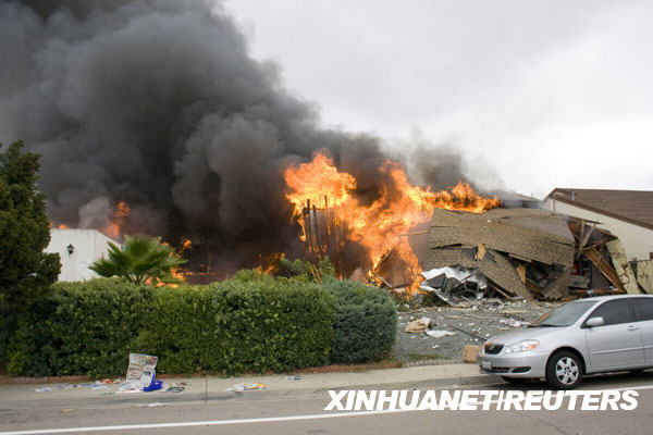 12月8日,坠毁的F/A-18D战斗机导致美国加利福尼亚州圣迭戈大学城区域房屋燃烧。当日,这架军用飞机在此坠毁,导致两人死亡,一些房屋受损。新华社/路透