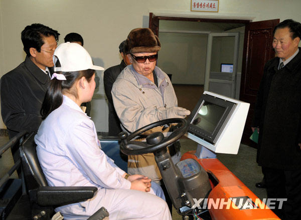 在这张朝中社12月19日播发的照片中,朝鲜最高领导人金正日在视察北部地区慈江道的一家机械工厂。新华社/朝中社