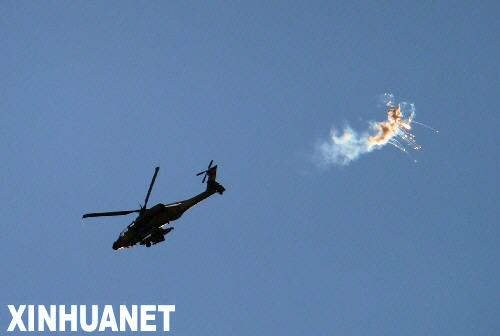 1月4日,一架以军武装直升机向在加沙地带北部地区发射火箭弹。当日,以军继续对加沙地带进行空中打击,以配合地面进攻。新华社记者 殷博古 摄