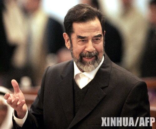 图为2006年1月29日,在伊拉克首都巴格达的绿区,伊前总统萨达姆在法庭上发言。新华社发