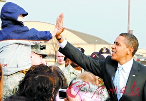 奥巴马善于与选民沟通。图为他与一名小孩子击手掌。