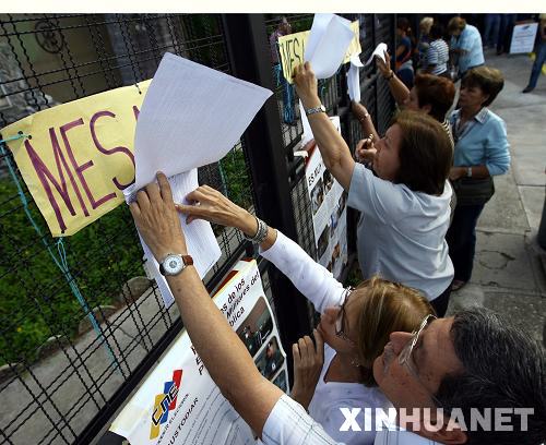 2月15日,在委内瑞拉中部城市巴伦西亚一处投票站,当地居民查看投票信息。当日,委内瑞拉就修宪案举行全民公投,选民将决定是否取消由选举产生的各级官员和议员连任次数的限制。如果修宪案获通过,查韦斯将有资格参加2012年的总统选举,争取再次连任。新华社发(埃尔南德斯摄)