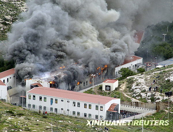 据当地警方称,当天,一些被拘留在此的非法移民试图逃跑失败后,便纵火焚烧该收容中心,造成多人受伤。新华社/路透