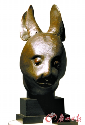 2月21日在巴黎大皇宫预展中的兔首铜像(图片来源:广州日报)
