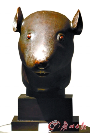 2月21日在巴黎大皇宫预展中的鼠首铜像(图片来源:广州日报)