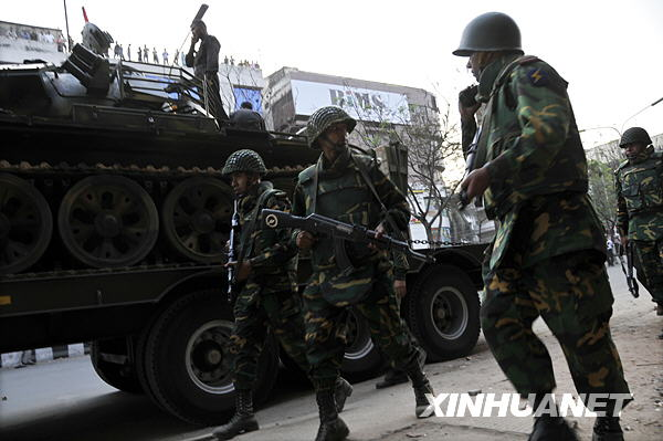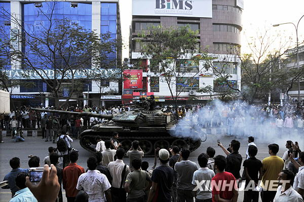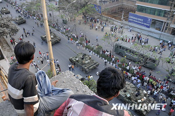 2月26日,在孟加拉国首都达卡街头,部队正在开往步枪队总部。新华社发(扎曼摄)