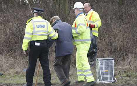 斯坦利·墨菲被警方和建筑工人带离高速公路。