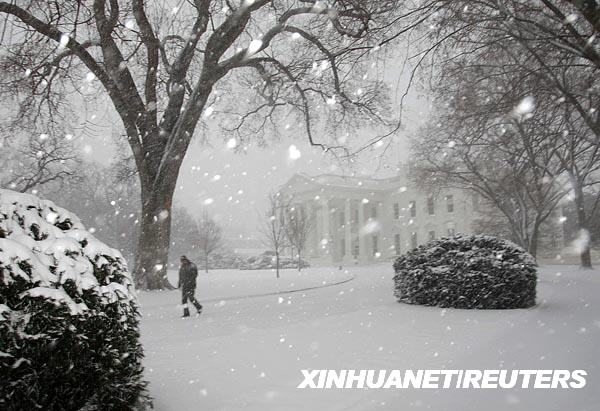 3月2日,大雪将美国白宫的南草坪覆盖。新华社/路透