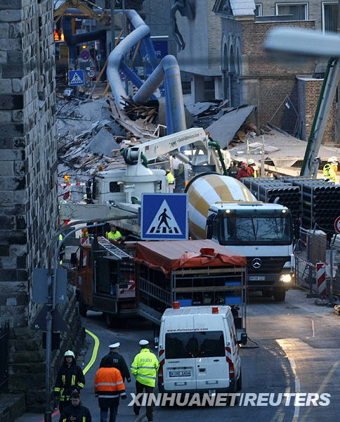 当天,科隆城市历史档案馆及其邻近的两栋建筑物倒塌,造成9人失踪,停在建筑物旁的多辆汽车被埋在瓦砾下。新华社/路透