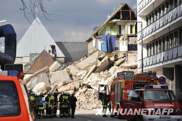 3月3日,在德国西部城市科隆,救援人员来到发生房屋倒塌事故的现场。新华社/法新