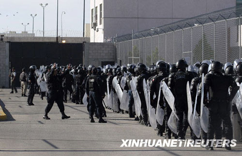 墨西哥一名政府官员说,华雷斯市一座监狱内的囚犯当日发生暴动,至少20名囚犯在暴动中死亡,另有多人受伤。新华社/路透