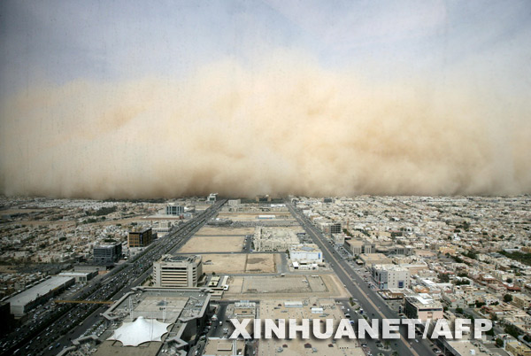 3月10日,沙尘暴席卷沙特阿拉伯首都利雅得。当日,利雅得遭遇沙尘暴天气,到处都是滚滚黄尘。新华社/法新