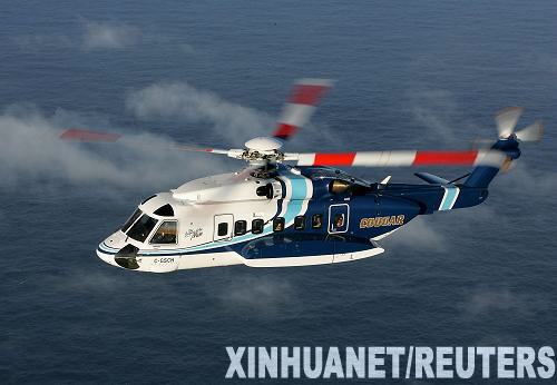 这是摄于加拿大纽芬兰省圣约翰斯市附近的一架西科斯基S-92型直升机的资料照片。3月12日,一架载有18人的直升机在纽芬兰省附近的大西洋海域坠毁,截至目前已有1人遇难,1人获救,另有16人失踪。新华社/路透