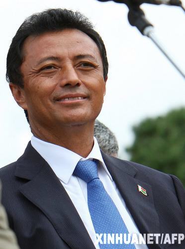 3月17日,马达加斯加总统拉瓦卢马纳纳通过电台发表讲话说,他已把权力移交给军方。这是2009年3月15日拉瓦卢马纳纳在马首都塔那那利佛参加集会时的照片。 新华社/法新