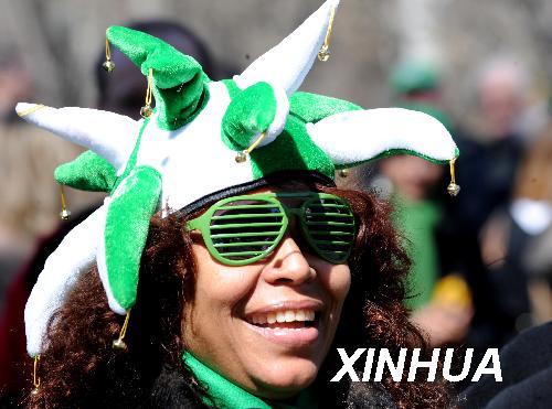 3月17日,在美国纽约曼哈顿,一位女士观看圣帕特里克节游行。当日,纽约举行盛大游行,庆祝圣帕特里克节。圣帕特里克节是爱尔兰人纪念爱尔兰守护神圣帕特里克的节日,至今已有1500多年历史,这一节庆传统被爱尔兰移民带入美国。新华社记者申宏摄