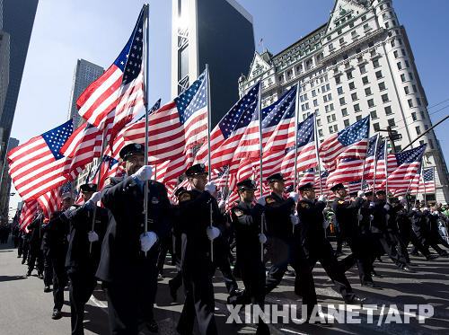 3月17日,圣帕特里克节游行队伍沿着美国纽约曼哈顿第五大道行进。当日,纽约举行盛大游行,庆祝圣帕特里克节。圣帕特里克节是爱尔兰人纪念爱尔兰守护神圣帕特里克的节日,至今已有1500多年历史,这一节庆传统被爱尔兰移民带入美国。新华社记者 谷欣容 摄