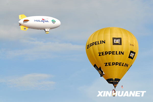 3月19日,一个马来西亚旅游宣传飞艇飞过热气球。