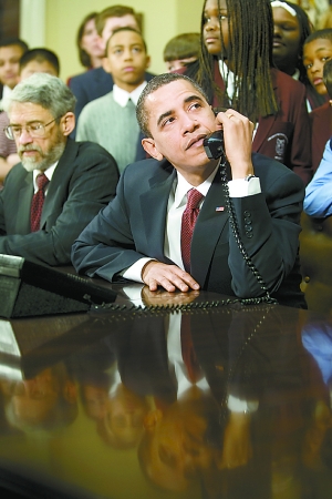新华网华盛顿3月24日电(记者任海军)美国总统奥巴马24日电话连线国际空间站,与正在那里的美国“发现”号航天飞机机组宇航员以及空间站常驻宇航员进行“天地对话”,并对10名宇航员在过去一周中的工作赞许有加。