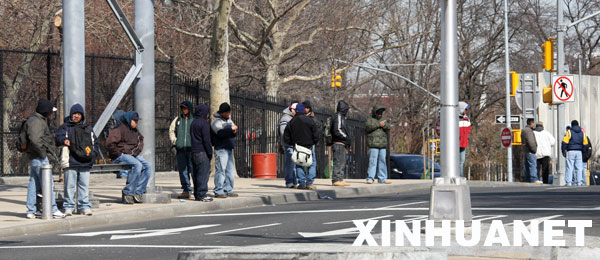 3月25日,大量失业者在美国纽约皇后区街头等待雇主的雇佣。新华社记者刘欣摄