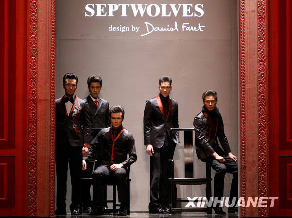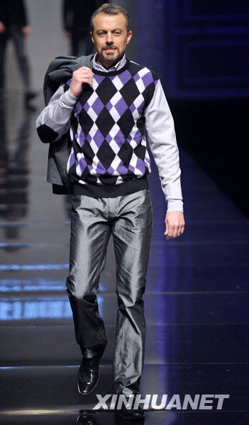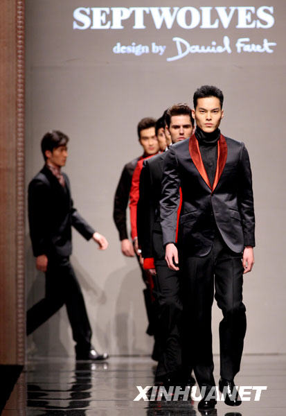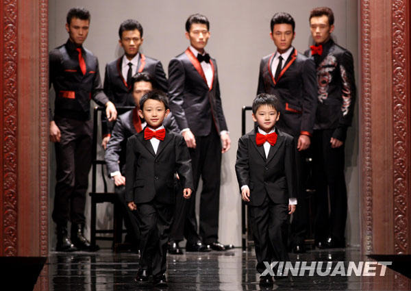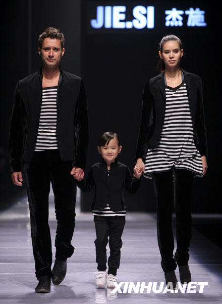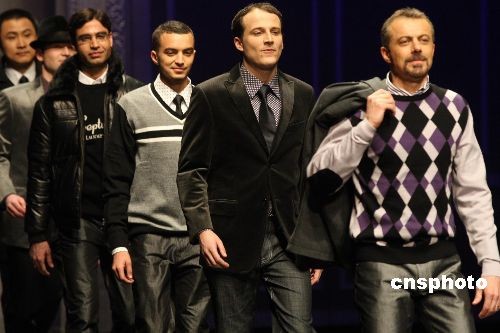 3月29日晚,在北京举行的中国国际时装周(09/10秋冬系列)展示活动上,某服装品牌推出国际设计师系列服饰。图为驻华外交官T台展风采。中新社发 钱兴强 摄
