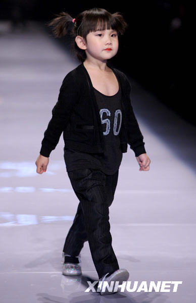3月29日,一位小模特在北京举行的中国国际时装周上展示时装作品。新华社记者 陈建力 摄