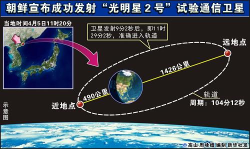 图表:朝鲜宣布成功发射“光明星2号”试验通信卫星 新华社发