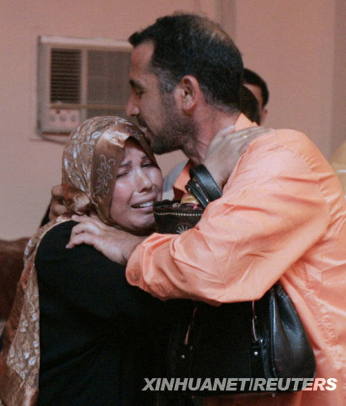 4月12日,在伊拉克巴格达北部的塔尔米耶,一名被释放的伊拉克人亲吻妻子的额头。当天,美军释放了32名被关押的伊拉克人。新华社/路透