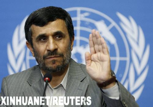 4月20日,在瑞士日内瓦,伊朗总统艾哈迈迪-内贾德出席联合国德班审议会议。艾哈迈迪-内贾德当日在这里表示,欢迎美国政府作出的改变对伊政策的姿态,但等待美国政策发生“实际的变化”。 新华社/路透