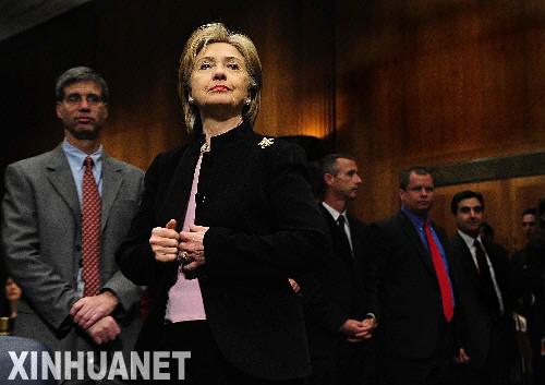 4月30日,美国国务卿希拉里·克林顿在华盛顿国会山出席国会参议院预算委员会举行的听证会,就奥巴马政府2009财政年度预算案回答参议员的提问。新华社记者张岩摄