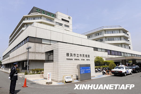 5月1日,一名安保人员在日本横滨市立市民医院外值勤。新华社/法新