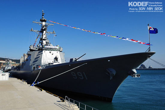韩国海军首艘宙斯盾级防空驱逐舰“文武大王”号 图片来源:千龙网