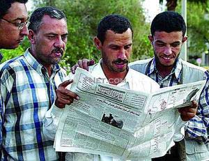资料图片:伊拉克男子在首都巴格达阅读《人民之路》报。在伊拉克萨达姆政权倒台以后,伊拉克第一份阿拉伯文报纸《人民之路》20日在巴格达面世。这份报纸由伊拉克共产党创办,创刊号共8版,免费分发给读者,深受巴格达民众的欢迎。这期《人民之路》创刊号的头版头条刊登了一篇题为“专制的崩溃”的长篇文章,而刊登在最后一版的文章题目是“伊拉克人民需要一个民主、独立、统一的联邦制伊拉克”。在萨达姆时代,除了由伊拉克阿拉伯复兴社会党发行的报纸外,其他任何党派都不能创办、发行报纸。新华/法新