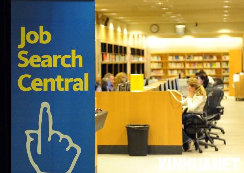 2009年5月8日 美国4月份就业岗位减幅缩小但失业率继续上升 5月8日,在美国纽约公共图书馆设立的择业信息中心内,求职者通过网络浏览就业信心、填写求职简历。当日,美国劳工部公布数据显示,美国非农业部门就业岗位4月份减少53.9万个,是过去6个月来的最小幅度,但失业率从3月份的8.5%升至8.9%,为1983年年底以来的最高点。 新华社记者申宏摄