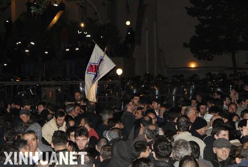 5月6日,近千名格鲁吉亚反对派人士封锁了首都第比利斯市警察局及附近进入市中心的公路入口,要求释放被警察逮捕的反对派支持者。格反对派从今年4月初开始,在首都第比利斯街头举行无限期集会,要求总统萨卡什维利辞职。 新华社记者郭群摄