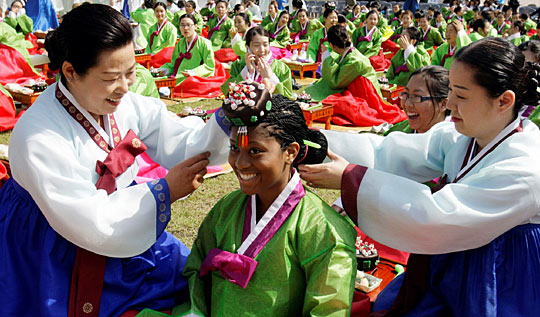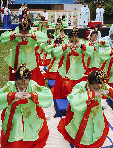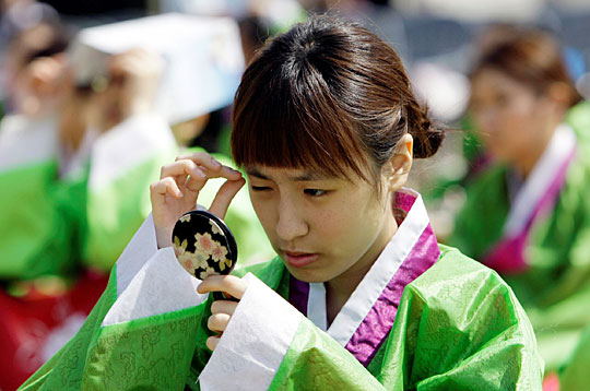 5月18日,韩国首都首尔庆熙宫于17日举行了第37届成人仪式。图为韩国少女举行成人仪式。