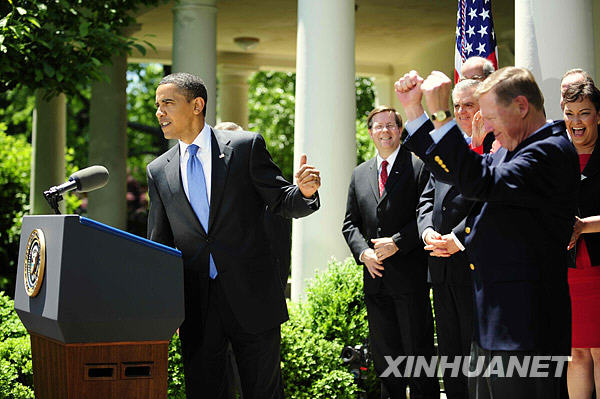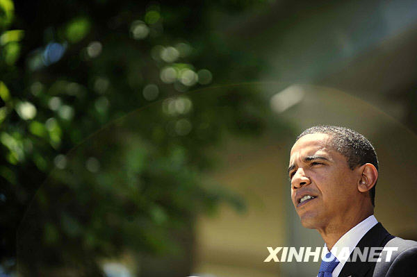 5月19日,美国总统奥巴马在首都华盛顿白宫玫瑰园发表讲话。当日,奥巴马宣布一项新的针对小型汽车和轻型卡车的排放标准和油耗标准,该标准将于2012年起开始实施。根据新的标准,到2016年小型汽车和轻型卡车的平均能耗将达到每加仑汽油行驶35.5英里(即每100公里耗油约8升)。新华社记者张岩摄