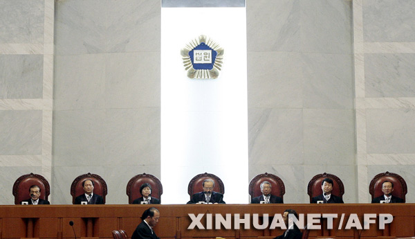 5月21日,在韩国首都首尔,韩国大法院长李容勋(中)对安乐死案作出裁决。