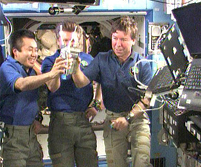 国际空间站宇航员干杯饮用尿液循环水。