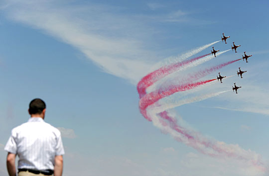 5月23日,国际航空展在距保加利亚首都索菲亚120公里的普罗迪夫Krumovo机场举行。土耳其空军特技飞行队——土耳其之星,在开幕的第一天进行了飞行表演。