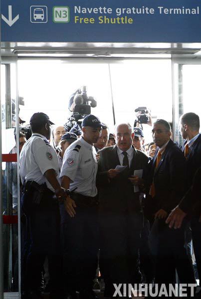 6月1日,法国交通部长多米尼克·比瑟罗(中)抵达巴黎戴高乐机场,处理法航客机在大西洋海域失踪事件。新华社记者张玉薇摄