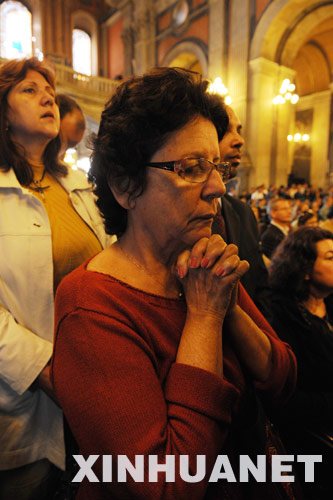 6月4日,人们在巴西里约热内卢坎德拉里亚教堂,为法航失踪飞机乘客祈祷并默哀。新华社记者 宋为伟 摄